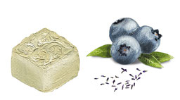 Weisse Couverture (Edelweiss), Blaubeeren, Rahm, Glukose, Butter, Pektin, Lavendel, Vanille