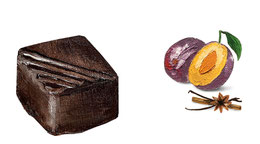 Sonnengereifte Zwetschgen sind allein schon ein Genuss, hier treffen sie auf ein Bouquet aus dunkler Grand Cru Maracaibo und wärmenden Gewürzen. Ein verblüffend köstliches Pralimo.
